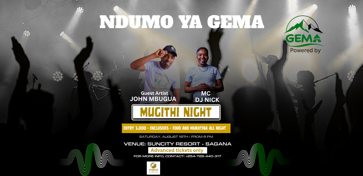 Get ready for a night full of rhythm, energy, and pure Mugithi vibes at Ndumo ya Gema, happening at the stunning Sunciti Resort in Sagana! This electrifying event brings together lovers of authentic Kikuyu music and culture for an unforgettable experience under the stars.